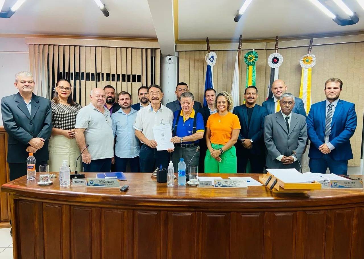 Rotarianos de Lucélia recebendo homenagem da Câmara Municipal de Lucélia