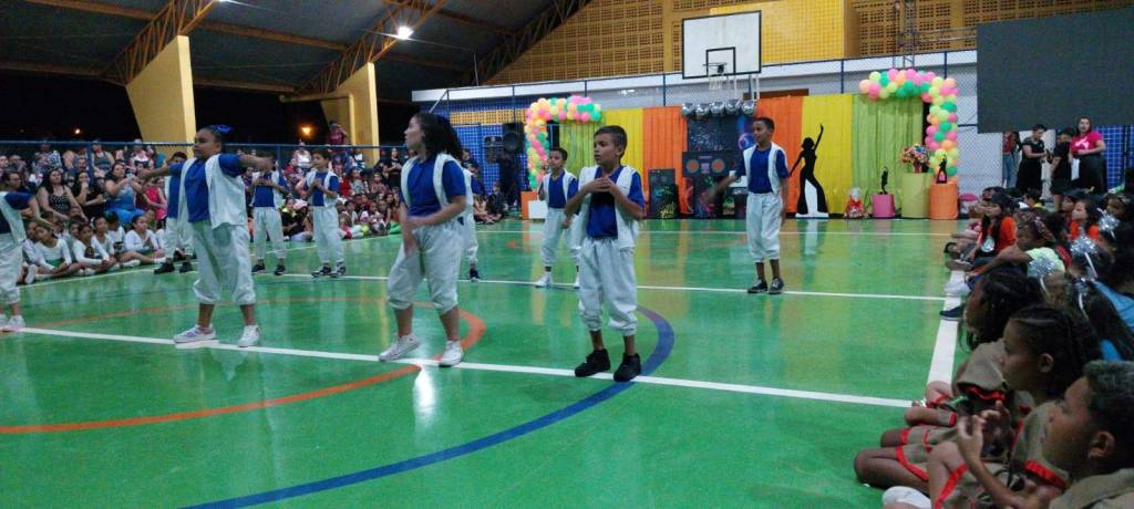Na noite de 29/11/2024, na quadra da EMEF Prof. Carlos Bueno foi realizado um grande espetáculo de dança, música e teatro com o tema “Máquina do Tempo”, com a finalidade de encerrar o ano letivo.