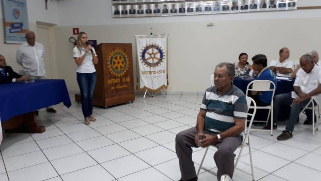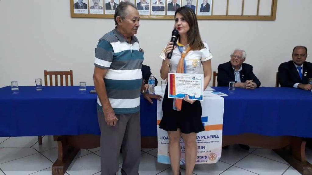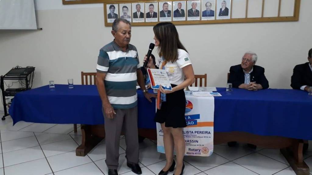 A Rotariana Vanessa Saraiva Pereira, fez a leitura do currículo e teceu considerações sobre o homenageado, Sr. Otacílio Oliveira Dantas, nascido no dia 03 de dezembro de 1932, que trabalha em Lucélia como Zelador, a mais de 23 anos.