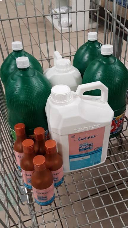 Para o Lar São Vicente de Paulo de Lucélia foi entregue: 10 garrafas (5 litros) de Água Sanitária; 4 garrafas (5 litros) de Álcool líquido 70º; 02 garrafas (5 litros) de Álcool em Gel Antisseptico; 5 frascos (250 gramas) de Álcool em Gel Antisseptico;